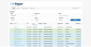 This page lists all the leads that come to the LMS and here they can be easily delegated, reviewed, updated and analyzed.